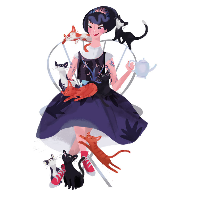 This illustration is inspired by the opening of lady dinah's cat emporium, the new Neko cafe in london.