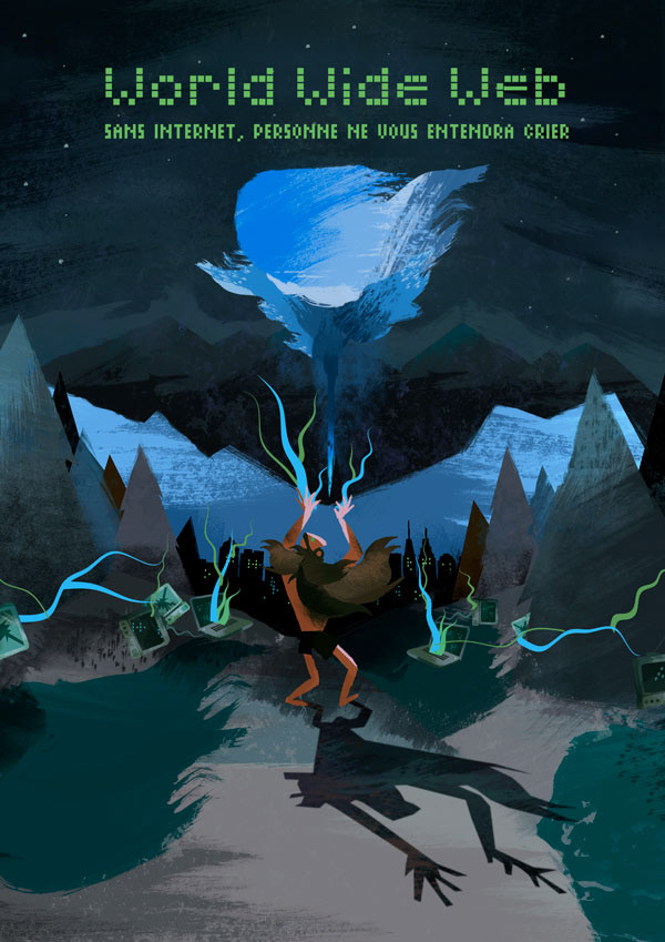 An illustration by Bali Engel for a short film named "World Wide Web".